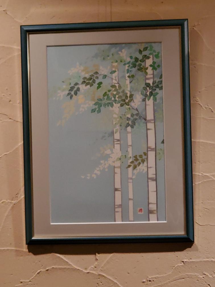 白樺 ブログ 2025.07.15 東京友禅作家の生駒暉夫さんが白樺を届けて くれました 清涼感とハイセンスで当店にピッタリです…♪︎ 白駒の池に何度も足を運び季節の白樺を画いた そうです 早速舟遊びの横に飾らせて頂きました